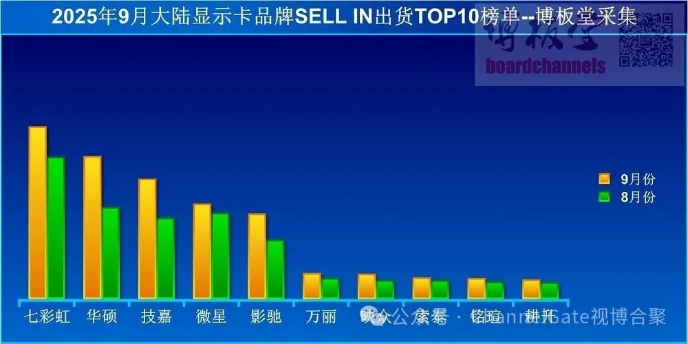 2025年9月中国大陆显卡出货量:技嘉重回前三,影驰逼近微星