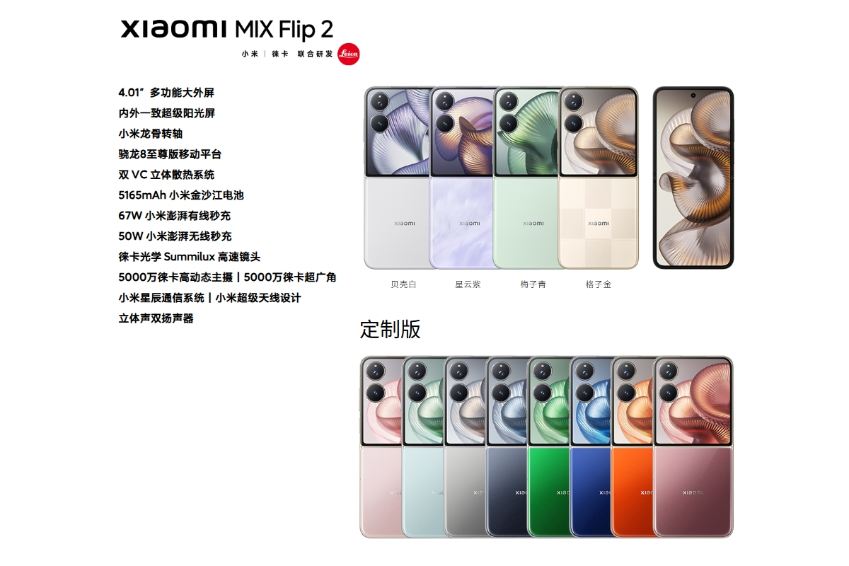 小米MIX Flip 2正式发布:骁龙8至尊版移动平台,4.01英寸外屏,5999元起