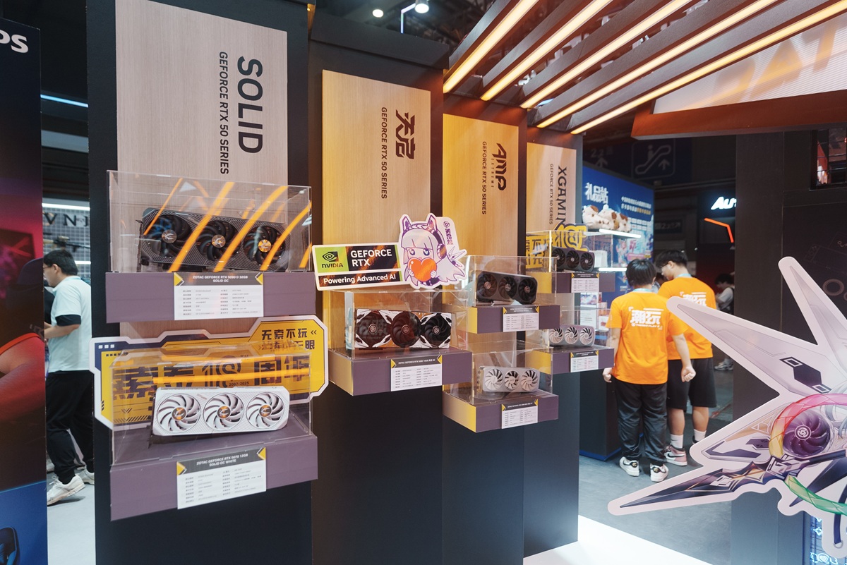 2025年7月11至13日期间,BilibiliWorld 2025在上海国家会展中心盛大开幕。索泰携超豪华阵容在2.1H馆2A09 - 2闪耀登场,不仅有多款GeForce RTX 50系列显卡,另外还有新款整机,围绕“黑金电竞宇宙”,为玩家打造沉浸式科技体验空间。