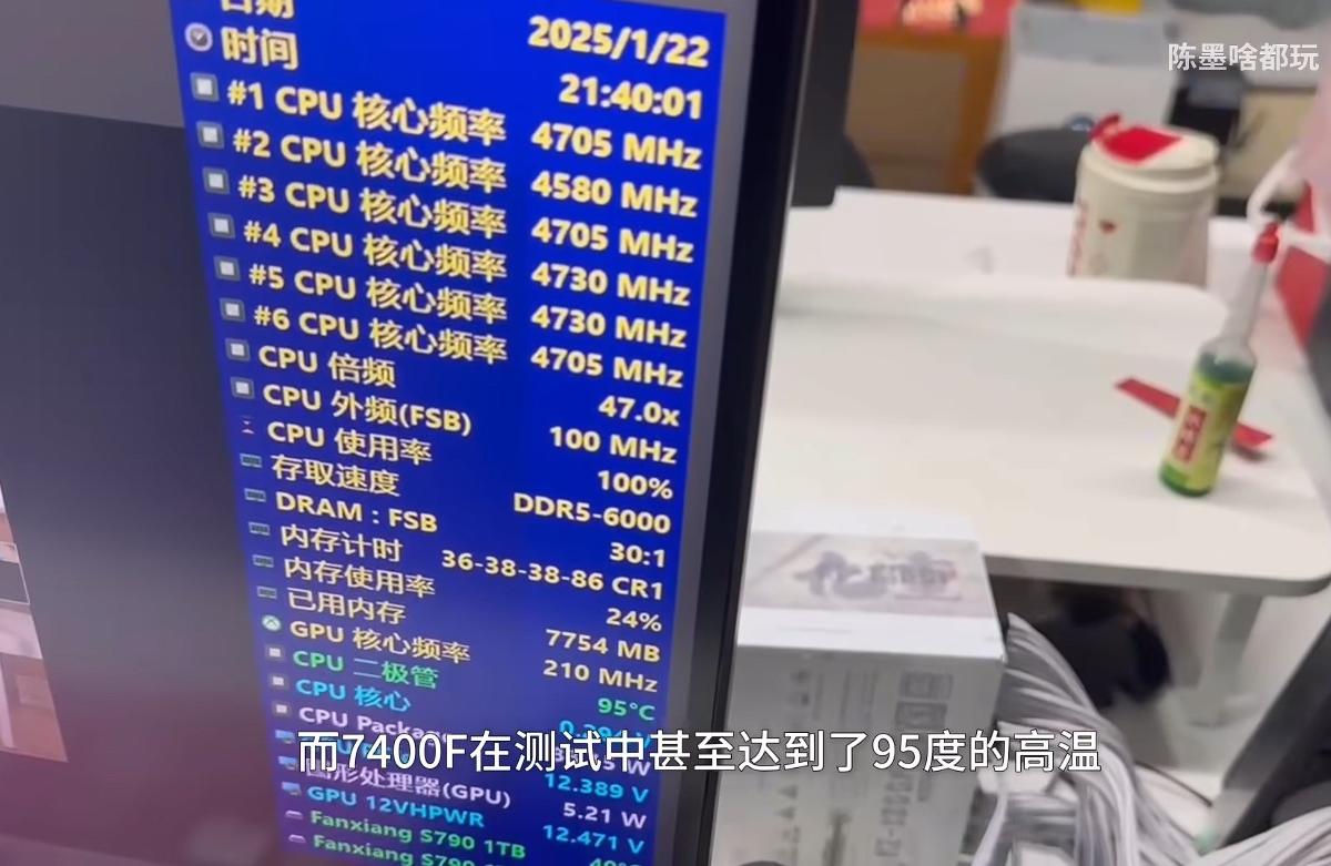 AMD 锐龙5 7400F处理器顶盖和核心间采用硅脂导热,超频性能受到限制
