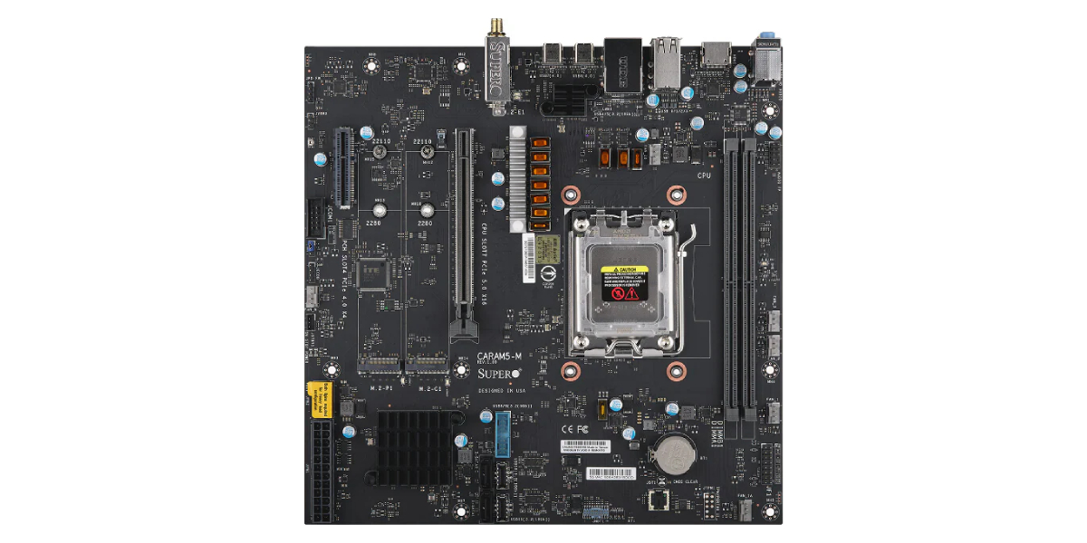 Super Micro超微是一家专注于提供商用服务器解决方案的美国企业,旗下主板产品一直基于英特尔芯片组,不过最近其更新了一款AMD的消费级主板平台,主板具体型号为CARAM5-M,采用了市场并不常见的横置处理器和内存插槽设计,配备B850芯片组,目前已在官网可以看到详细的规格信息。