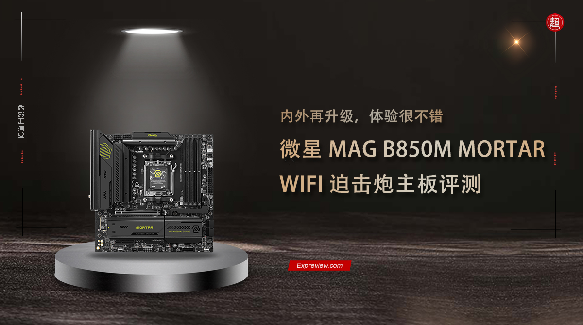 在首批B850主板发布两个多月后,微星终于带来了“万众期待”的MAG B850M MORTAR WIFI迫击炮,也就是DIY用户们十分熟悉的“迫击炮”系列。仅从外观上看,新一代的B850M迫击炮不仅使用了和MAG系列对应的荧光绿主题色,而且下方PCIe槽也做了相应的调整,将显卡插槽放在了第一位,可以在紧凑机箱中容纳更厚的显卡,那么它实际的用料、供电表现和超频表现又是如何呢?别急,这篇评测将会为你一一道来。