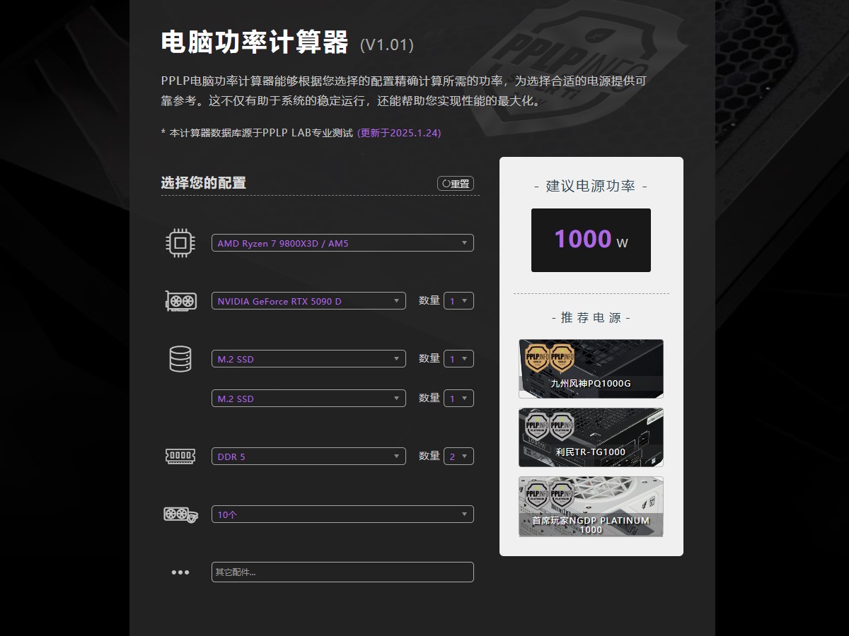 近年来,几乎每一代新CPU和显卡对PC供电的要求越来越高,玩家构建新主机的时候,购置新电源的功率也在不断攀升。为了让玩家有一个更为清晰的认知,PPLP Lab去年推出名为“PPLP电源效能星级计划”的全新独立PC电源的评价体系,能够更为全面且准确地评价电源的品质。现在PPLP Lab在官网上提供了PPLP电脑功率计算器(v1.01版),让玩家可以根据自己的配置,选择合适的电源。