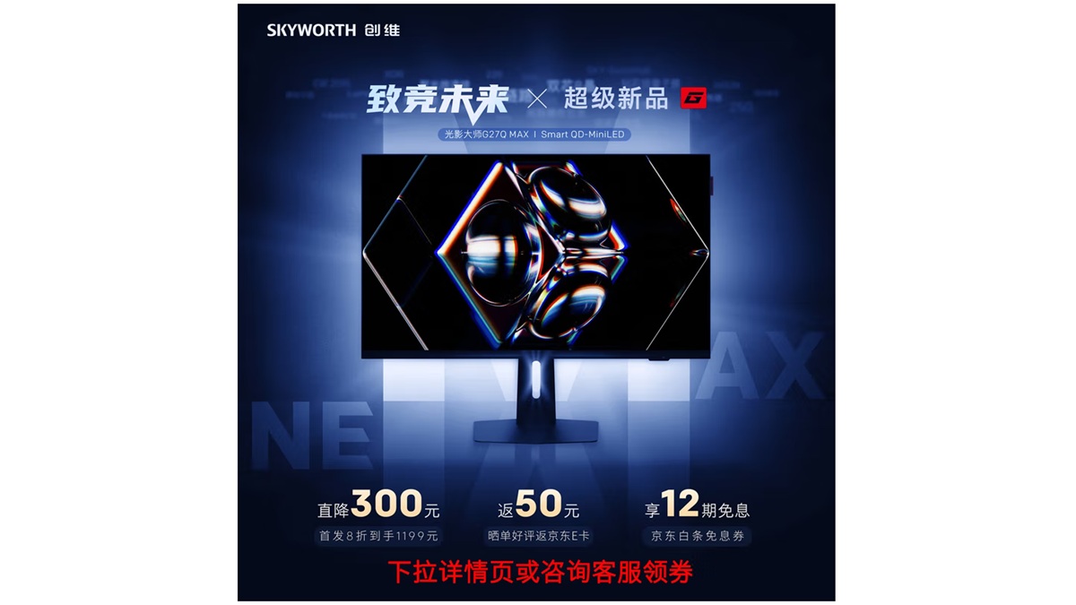 创维带来G27Q MAX显示器:2K@250Hz,QD-Mini LED屏,首发价1499元吕嘉俭 发布于2小时之前 / 关键字: 创维, mini LED创维宣布,推出G27Q MAX电竞显示器,采用了QD-Mini LED屏幕。目前该款新品已登陆电商平台,并开启了预约抢购,显示定价为1499元,首发价1199元,厂商提供三年质保。另外支持12期白条免息分期,晒单好评返50元京东E卡,具体可咨询在线客服工作人员。 G27Q MAX 电竞显示器,京东地址:点此前往>>> 展开阅读| 收藏 | 评论